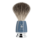 Wet shave and facial massage in one? This is possible thanks to pure badger hair. This shaving brush is the portal to the world of shaving culture from the Erz Mountains. The natural material with its darker colour from brownish grey to black is a reflection of its extremely robust quality. The hair is stronger than silvertip and fine badger, yet softer and much more flexible than bristle material. The brush head is manufactured by machine and is processed in line with the high standards of the MÜHLE manufactory.